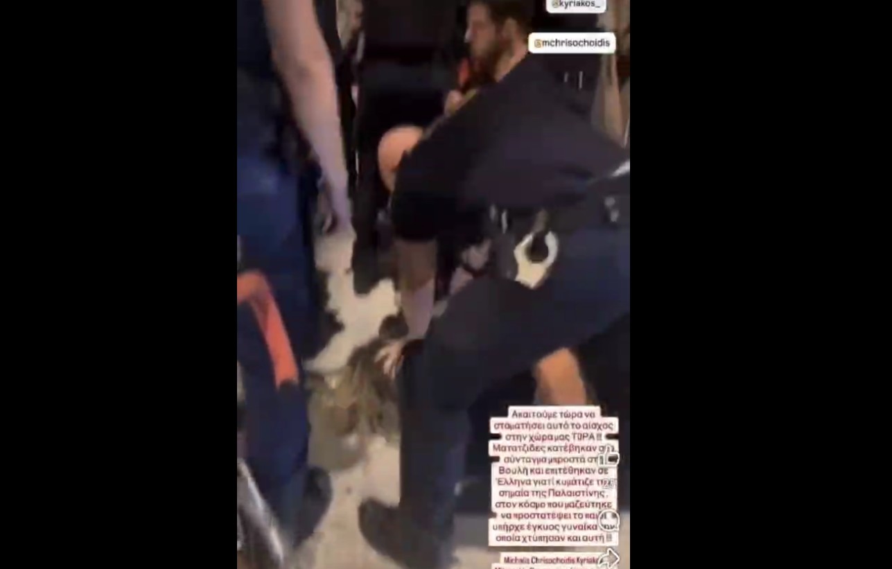 The incident took place during the regular evening sit-in at the Tomb of the Unknown Soldier, part of the daily protest actions calling for an end to the genocide in Gaza. Demonstrators, including Palestinians and solidarity groups, report repeated instances of police harassment, arbitrary checks, arrests, and violent escalation by Greek police forces.