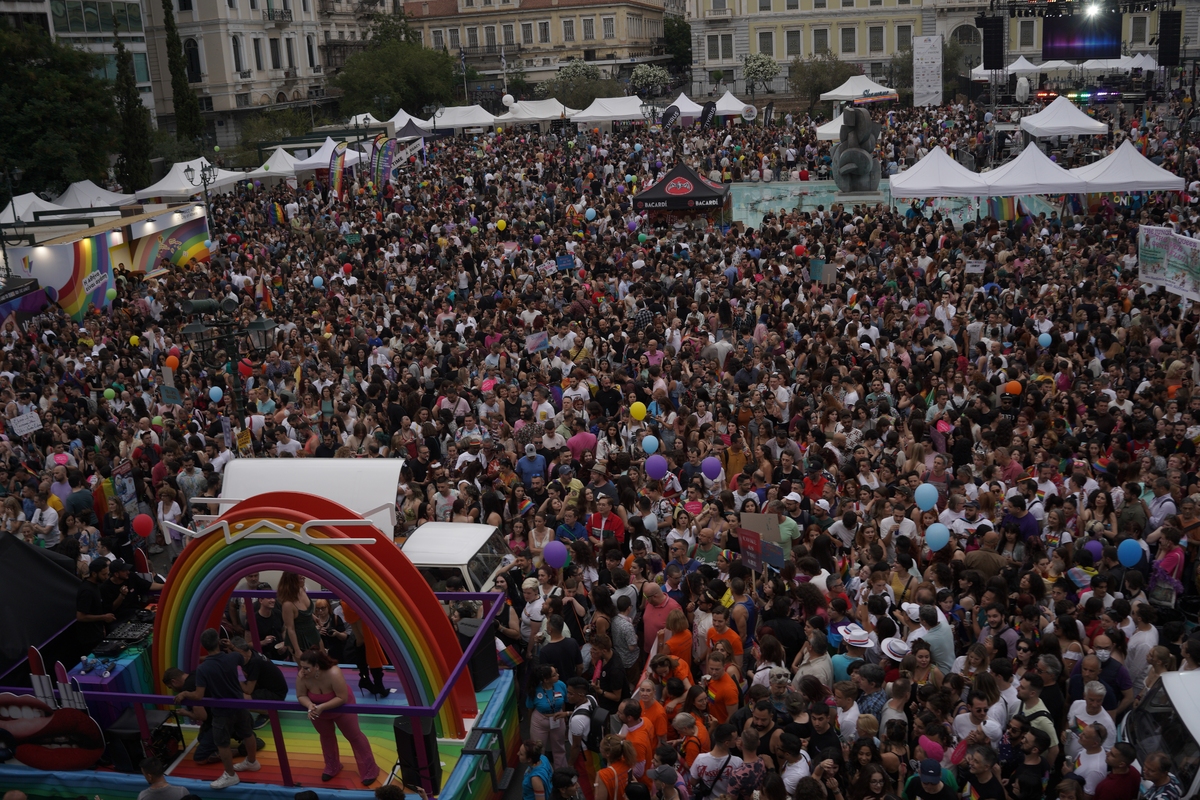 Με κεντρικό σύνθημα «Μία φορά κι έναν καιρό» πλήθος κόσμου συγκεντρώθηκε από νωρίς στην Πλατεία Κοτζιά κρατώντας σημαίες στα χρώματα του ουράνιου τόξου για να συμμετάσχει στις δράσεις και εκδηλώσεις του Athens Pride. Λίγο μετά τις 19:30 το απόγευμα ξεκίνησε η παρέλαση από την Πλατεία Κοτζιά.