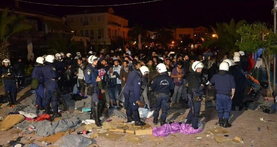 Τον Απρίλιο του 2018, μετά το θάνατο ενός Αφγανού πρόσφυγα λόγω ανεπαρκούς ιατρικής περίθαλψης στη Μόρια, ομάδα περίπου 200 προσφύγων συγκεντρώθηκε στην Πλατεία Σαπφούς, διαμαρτυρόμενη για ανεπαρκή ιατρική φροντίδα και άθλιες συνθήκες στο ΚΥΤ Μόριας. Στις 22 Απριλίου, κατά τη διάρκεια επίθεσης από ακροδεξιούς ενάντια στους πρόσφυγες, η αστυνομία προσπάθησε να διαλύσει τη συγκεντρωμένη ομάδα και τελικά προσήγαγε 120 πρόσφυγες και 2 Έλληνες υπηκόους. Μεταξύ των προσαχθέντων υπήρχαν και 12 ανήλικοι. Στις 23 Απριλίου, ασκήθηκε ποινική δίωξη κατά των προσαχθέντων με της κατηγορίες της στάσης από κοινού, αντίστασης κατά της αρχής και παράνομης κατάληψης δημοσίου κτήματος.