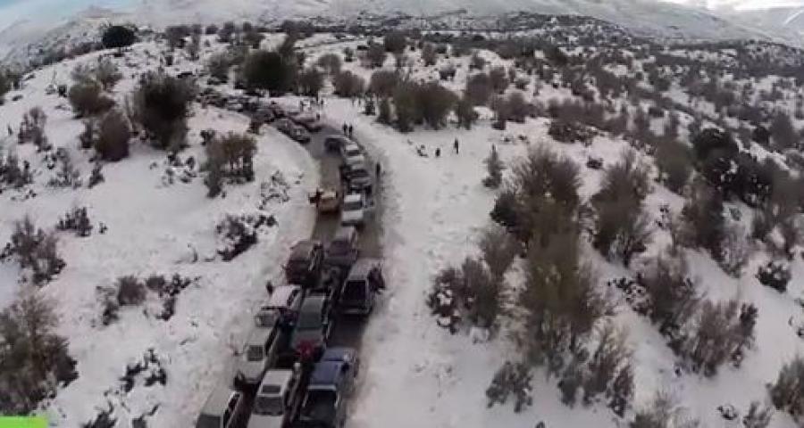 A drone΄s-eye-view of a massive traffic jam in Crete due to heavy snowfall [VIDEO]