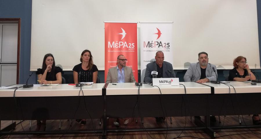 «Ως έλληνες πατριώτες και ριζοσπάστες ευρωπαϊστές έχουμε ύψιστο καθήκον είναι να αρνούμαστε να υπακούμε δουλικά στους ανίκανους ψευδοτεχνοκράτες οι οποίοι θυσιάζουν την Ελλάδα, απαξιώνοντας την Ευρώπη, στον βωμό στενών ολιγαρχικών συμφερόντων. Ούτε το ευρώ, ούτε η δραχμή δεν είναι φετίχ για εμάς στο ΜέΡΑ25. Η Ελληνική Δημοκρατία και ο τερματισμός της Ερημοποίησης της Πατρίδας είναι», τόνισε είσης ο επικεφαλής του ΜέΡΑ25.