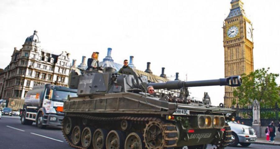 Στην Αγγλία όμως, είναι για καλό. Το Battlefield 3 κυκλοφόρησε, η μάχη που δίνει με το καινούριο Μodern Warfare είναι τεράστια και η ΕΑ σκέφτηκε: «Τι καλύτερη διαφήμιση από το να βγάλω ένα τανκ στους δρόμους».