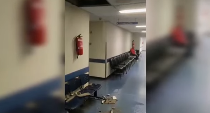 Σε βίντεο που κάνει τον γύρο του διαδικτύου, φαίνεται καθαρά πως η ψευδοροφή έπεσε και τα νερά άρχισαν να τρέχουν στο χώρο αναμονής, όπου ευτυχώς εκείνη την ώρα δεν υπήρχαν ασθενείς ή επισκέπτες.