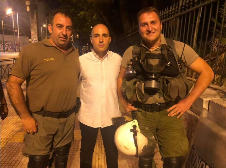 «Πριν την «καταδρομική» μου στο ΑΤ Εξαρχείων την προηγούμενη εβδομάδα επισκέφθηκα δυο φίλους: Τον Γιώργο και τον Βασίλη. Είναι οι δύο άνδρες της ΥΑΤ που με έσωσαν από τα χέρια των τραμπούκων το 2012. Με υποδέχθηκαν στην κλούβα έξω από το Πολυτεχνείο, όπως αργότερα οι συνάδελφοί τους στο Πεδίον του Άρεως, και μαζί με τα άλλα παιδιά, τους «ματατζήδες» που ο ΣΥΡΙΖΑ έχει καταστήσει στατικούς στόχους των μολοτοφόρων και που βγάζει στη σέντρα για καψώνι, τα είπαμε για ώρα.» αναφέρει, και συνεχίζει υποστηρίζοντας την αστυνομοκρατία και την ανάγκη υποστήριξης της αστυνομίας, τονίζοντας πως εκεί στηρίζεται η «αστική δημοκρατία».