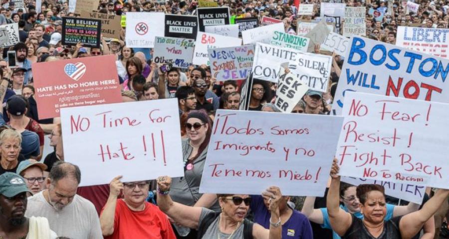 Πλήθος διαδηλωτών συγκεντρώθηκαν στη Βοστώνη για να υπερασπιστούν την «ελευθερία του λόγου» συντηρητικοί και υποστηρικτές του Τραμπ, μια βδομάδα μετά το πολύνεκρο περιστατικό στο Σάρλοτσβιλ, όπου αυτοκίνητο έπεσε πάνω σε διαδηλωτές.