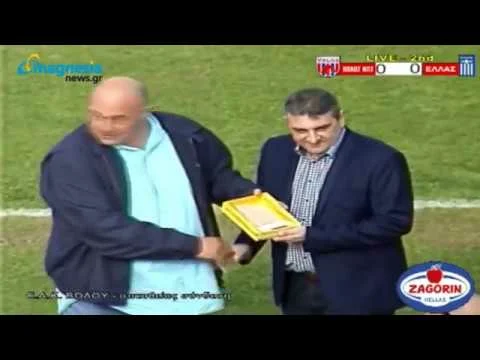 Η βράβευση του δημάρχου Βόλου, που παρά την καταδίκη του στο σκάνδαλο «Κοριόπολις» παραμένει στον δημαρχιακό θώκο χάρη σε ένα παραθυράκι του «Καλλικράτη» από την περίοδο διακυβέρνησης Σαμαρά, έλαβε χώρα πριν την έναρξη φιλικού για φιλανθρωπικούς σκοπούς, ανάμεσα στην Εθνική Ελπίδων και τον Βόλο ΝΠΣ.