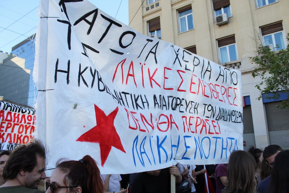 «Τα νομοσχέδια ακυρώνονται στον δρόμο» ένα από τα συνθήματα που ακούγονταν στην πορεία.