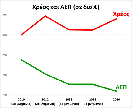 Ωστόσο, για μια ακόμα φορά αποδείχτηκε ότι οι μνημονιακές πολιτικές ούτε ανάπτυξη φέρνουν ούτε το χρέος μειώνουν: ως το 2018, η σχέση χρέος/ΑΕΠ παρέμεινε πεισματικά στο 176% πριν ο κυβερνητικός ΣΥΡΙΖΑ φέρει το τέταρτο μνημόνιο που ο ίδιος βάπτισε… «έξοδο από τα μνημόνια»! Έτσι, φτάσαμε στο σήμερα, με το ΑΕΠ να βρίσκεται στα τάρταρα και το χρέος να φτάνει στην στρατόσφαιρα, με αποτέλεσμα η σχέση χρέος/ΑΕΠ να ξεπεράσει το ιλιγγιώδες 210% για το 2020. Το πέμπτο μνημόνιο (ή όπως αλλιώς κι αν το βαπτίσουν), το μνημόνιο της ΝΔ και του Κ.Μητσοτάκη, βρίσκεται επί θύραις…