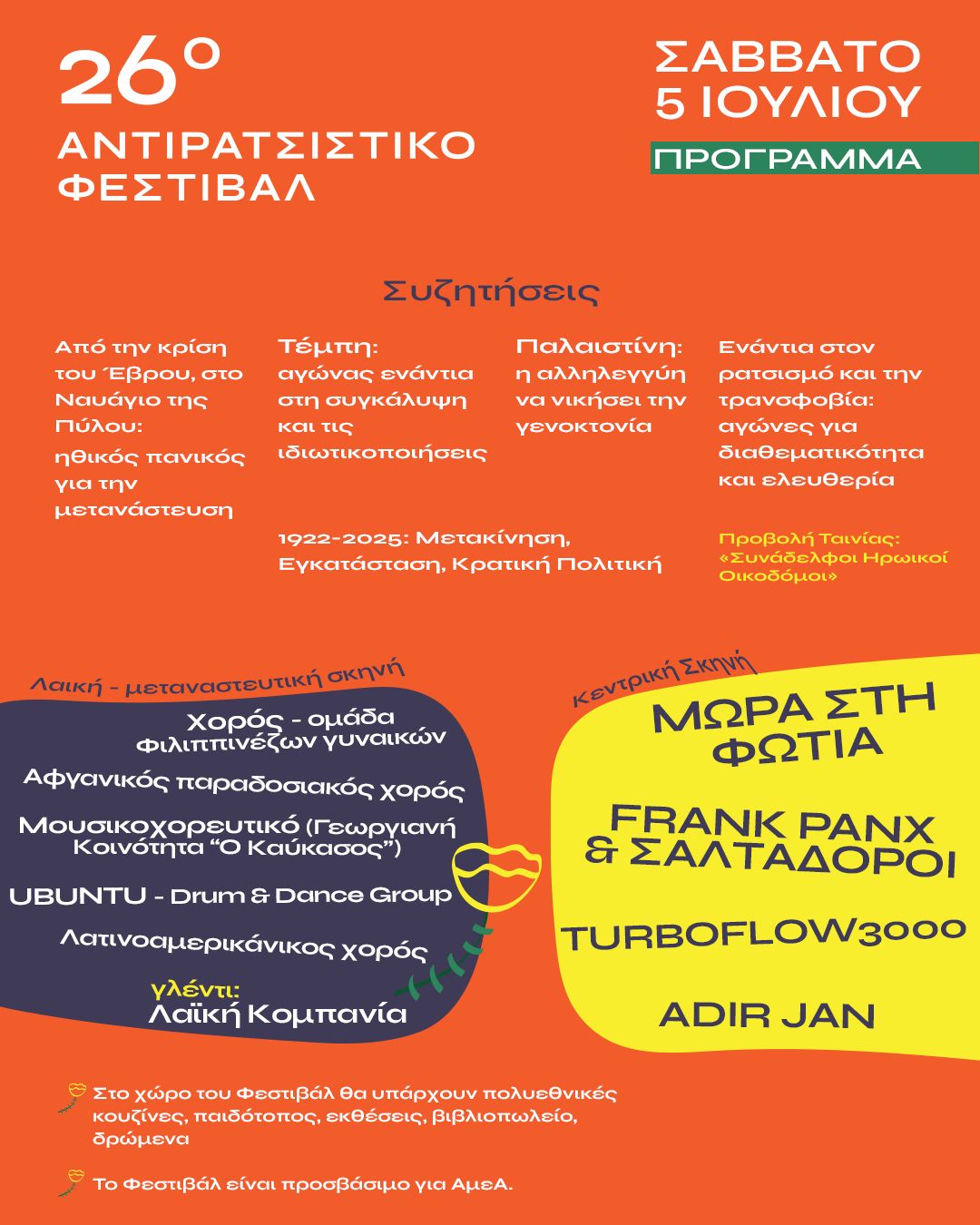 - κεντρική σκηνή: Μωρά στη Φωτιά|Frank Panx & Σαλταδόροι|TURBOFLOW3000|Adir Jan|26thAntiraFest