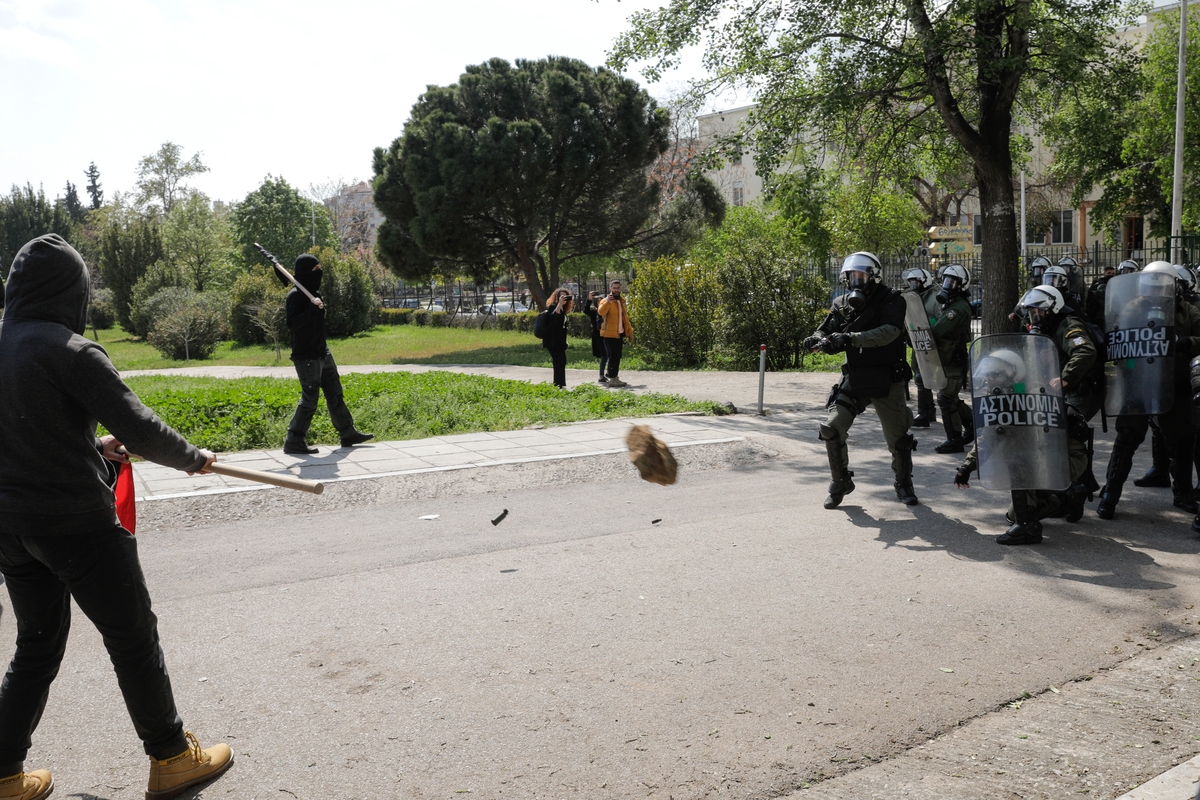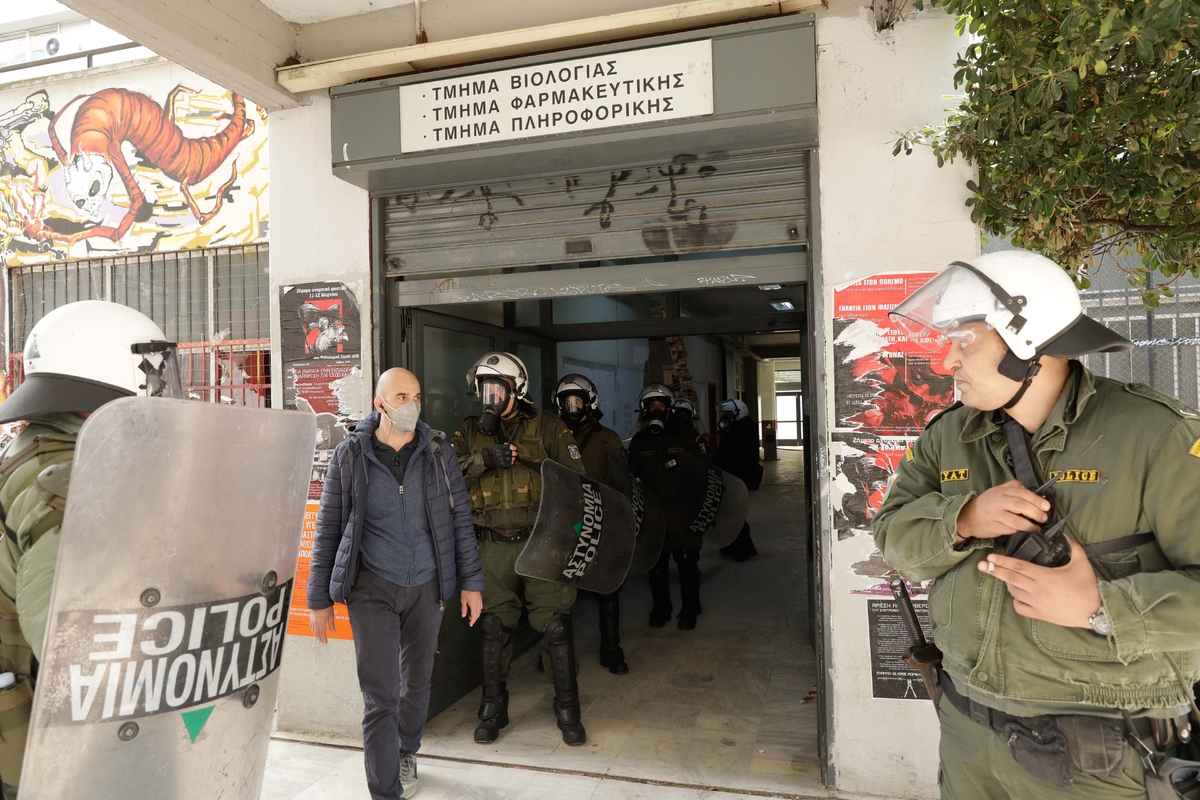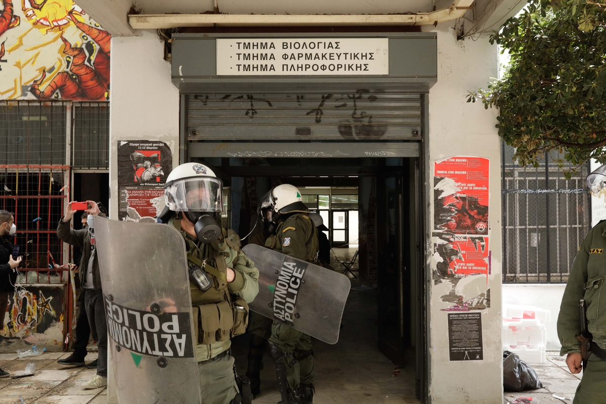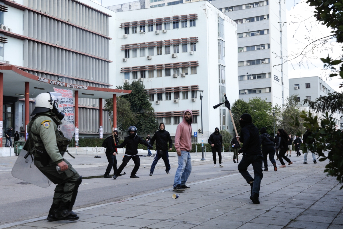 Ένταση για δεύτερη μέρα μεταξύ ομάδας ατόμων και αστυνομικών δυνάμεων, καθώς οι συγκεντρωμένοι εισήλθαν μέσα στο κτίριο της ΣΘΕ, προσπαθώντας να παρεμποδίσουν εργασίες στον χώρο του Τμήματος Βιολογίας, του λεγόμενου “Στέκι στο Βιολογικό”. Οι αστυνομικές δυνάμεις βρίσκονταν μπροστά από τη σχολή για να περιφρουρήσουν τις εργασίες που κάνει ο εργολάβος.