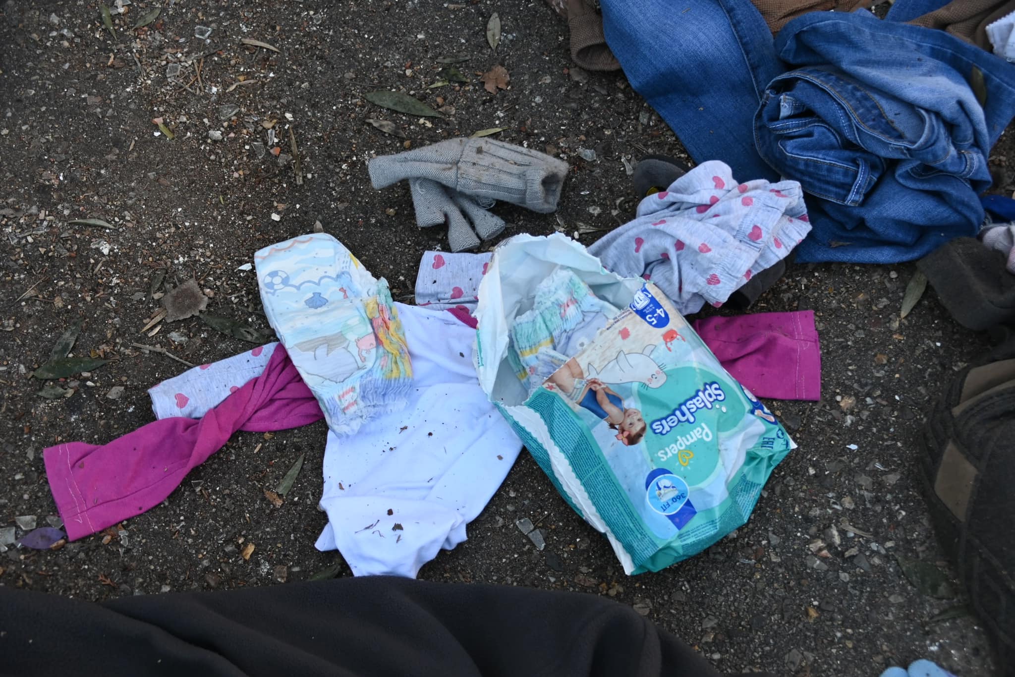 Ωστόσο, στις φωτογραφίες του φωτορεπόρτερ Γιάννη Κέμμου, διακρίνονται και γάλατα και πάνες και είδη ρουχισμού σε καλή κατάσταση.