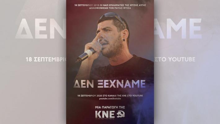Με τίτλο «Δεν ξεχνάμε…», η Επιτροπή Προπαγάνδας του ΚΣ της ΚΝΕ μαγνητοσκόπησε ένα ντοκιμαντέρ για τη δολοφονία του Παύλου Φύσσα από τη ναζιστική συμμορία, με συνεντεύξεις που μαρτυρούν τα γεγονότα της δολοφονίας του Παύλου Φύσσα, πώς απάντησε ο λαός και η νεολαία, συνεντεύξεις που αποκαλύπτουν γνωστές και άγνωστες πτυχές της πολύκροτης δίκης της Χρυσής Αυγής…