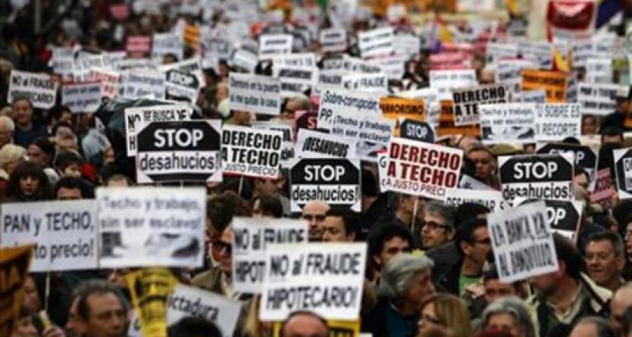 Εκατοντάδες χιλιάδες πολίτες στην Ισπανία φέρονται να έχουν χάσει τα ακίνητά τους από το 2008. Οι εξώσεις αυξήθηκαν κατά 21,2% σε σύγκριση με το 2010. Η ανεργία ξεπερνά το 26%. Το 11,2% έφτασαν το Δεκέμβριο του 2012 τα μη εξυπηρετούμενα δάνεια.