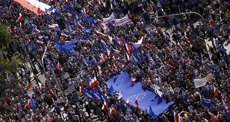 Σύμφωνα με τους διοργανωτές των κινητοποιήσεων οι διαδηλωτές ξεπέρασαν τους 240.000, καθιστώντας τη χθεσινή συγκέντρωση ως μια εκ των μαζικότερων των τελευταίων δεκαετιών . Με κεντρικό σύνθημα «Είμαστε και παραμένουμε Ευρώπη» και κρατώντας σημαίες της Πολωνίας και της ΕΕ, οι διαδηλωτές κάλεσαν την εθνικιστική κυβέρνηση να μην γυρίζει την πλάτη της στην ευρωπαϊκή οικογένεια και να ακολουθήσει την φιλοευρωπαϊκή πολιτική που είχαν χαράξει προηγούμενες κυβερνήσεις.
