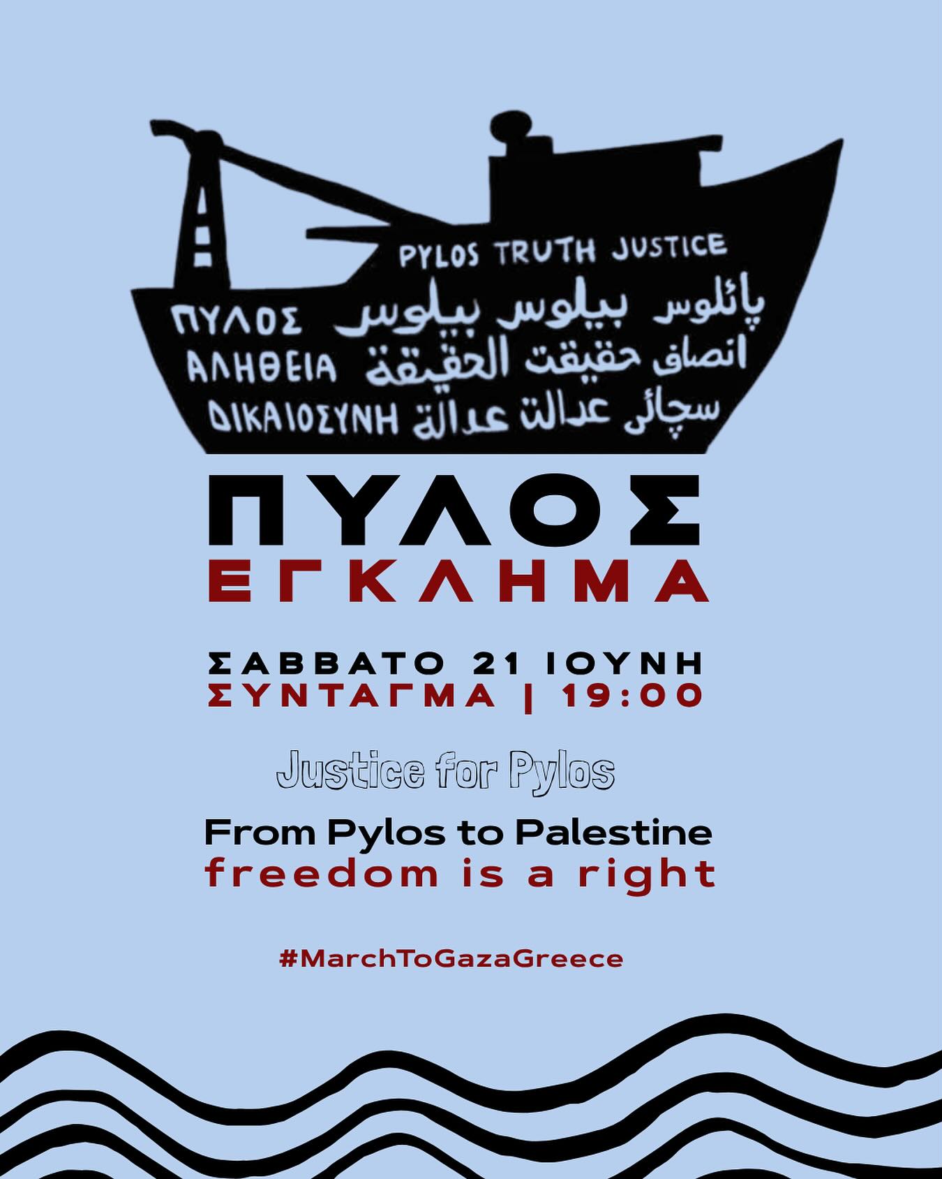 Διαδηλώνουμε και ενάντια στην κλιμάκωση του πολέμου που εξαπολύει το σιωνιστικό κράτος – τρομοκράτης εναντίον του Ιράν, με την πλήρη στήριξη των ΗΠΑ, της ΕΕ και της ελληνικής κυβέρνησης.Για όλους αυτούς τους λόγους θα βαδίσουμε μαζί μέχρι την πρεσβεία των ΗΠΑ, με τους επιζήσαντες του ναυαγίου και τις δικηγόρους τους, τις αντιρατσιστικές κινήσεις και τις κοινότητες μεταναστών και προσφύγων, την Παλαιστινιακή Παροικία και τις οργανώσεις των Παλαιστίνιων, τους εργαζόμενους και τη νεολαία, όλο το αντιπολεμικό κίνημα αλληλεγγύης.