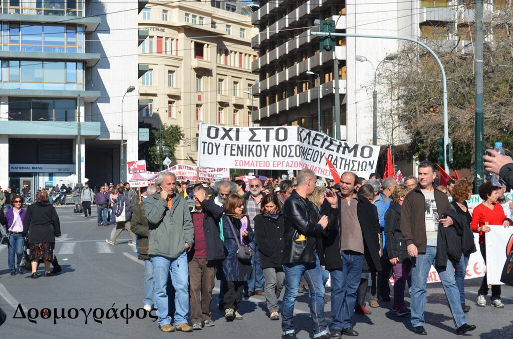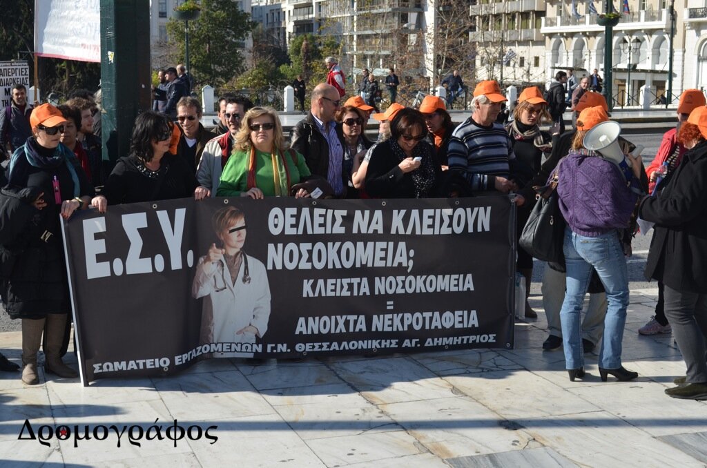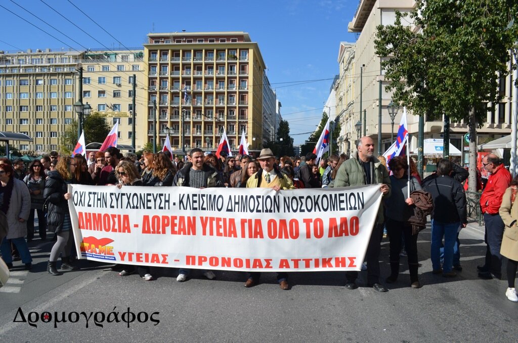 Γιατροί, νοσηλευτές και άλλοι εργαζόμενοι στα δημόσια νοσοκομεία και το ΕΚΑΒ, συγκεντρώθηκαν μπροστά από το υπουργείο, ενώ στη συνέχεια, πραγματοποιήθηκε πορεία προς την πλατεία Συντάγματος, μέσω των οδών Πατησίων και Σταδίου.