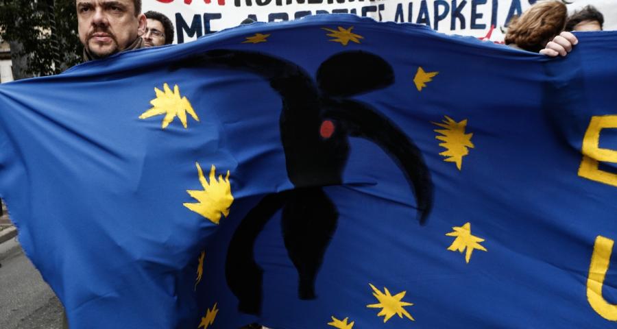 Οι διαδηλωτές χαρακτηρίζουν τη συζήτηση υποκριτική και προκλητική, όταν με αποφάσεις της Ευρωπαϊκής Ένωσης σφαγιάζονται οι συντάξεις και τα εισοδήματα του λαού και ταυτόχρονα καταργούνται συλλογικές συμβάσεις εργασίας.