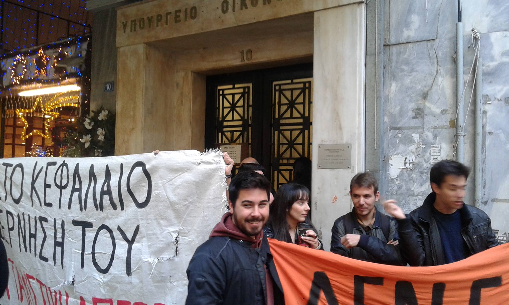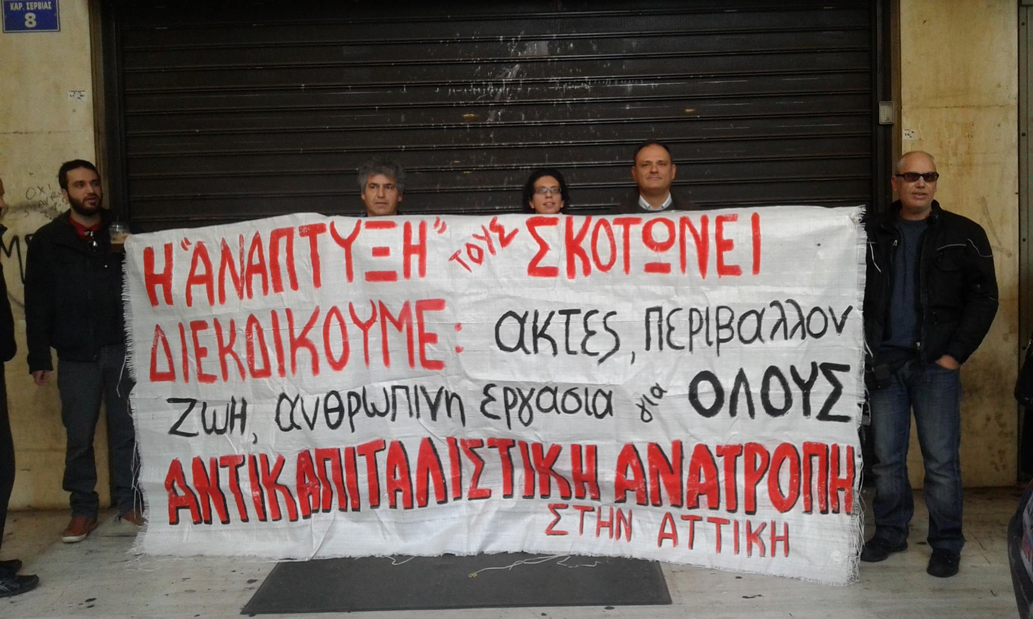 Στην παράσταση διαμαρτυρίας συμμετέχουν περίπου 60 μέλη κομμάτων και οργανώσεων όπως της ΛΑΕ, της Ανταρσύα, της Αριστερής Ριζοσπαστικής Κίνησης, της Αντικαπιταλιστικής Ανατροπής και της Ροσινάντε.