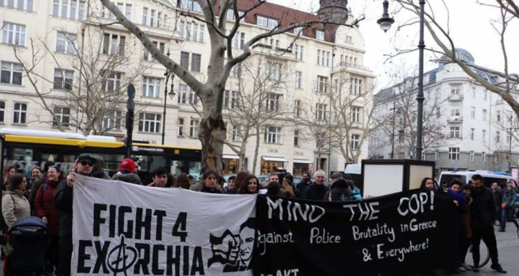 Σήμερα Σάββατο 18 Γενάρη 2020 μπροστά από την ελληνική πρεσβεία στο Βερολίνο πραγματοποιήσαμε συγκέντρωση διαμαρτυρίας ενάντια στην καταστολή και την αστυνομική αυθαιρεσία στην Ελλάδα, η οποία τους τελευταίους μήνες έχει κλιμακωθεί επικίνδυνα.