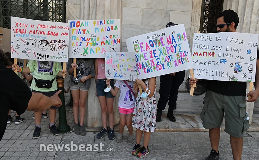 Διαμαρτυρία από γονείς και παιδιά στο δημαρχείο Αθηνών πραγματοποιήθηκε το μεσημέρι της Δευτέρας.