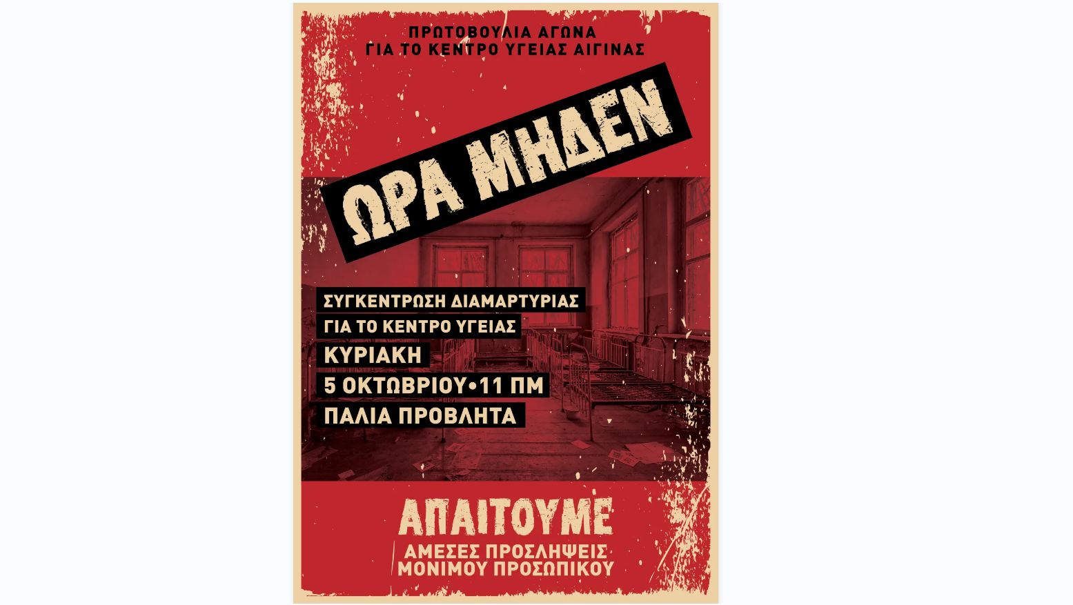 ΚΑΛΟΥΜΕ ΤΟ ΛΑΟ ΤΗΣ ΑΙΓΙΝΑΣ ΝΑ ΥΠΕΡΑΣΠΙΣΤΕΙ ΤΟ ΔΙΚΑΙΩΜΑ ΣΤΗ ΔΗΜΟΣΙΑ ΚΑΙ ΔΩΡΕΑΝ ΥΓΕΙΑ