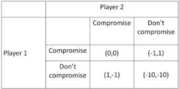 Αυτές είναι οι αποδόσεις στις στρατηγικές που έχουν οι παίκτες. Οι μετρήσεις δείχνουν ότι ο ελληνικός λαός είναι έτοιμος να στηρίξει μια κυβέρνηση που θα συγκρουστεί στη βάση του προγράμματος της ΔΕΘ, ενώ δεν είμαστε σε θέση να γνωρίζουμε πως θα εκλάβει η γερμανική κοινή γνώμη τυχούσες αναταραχές σε οικονομικό και νομισματικό επίπεδο. Υποθέτουμε ότι οι επιπτώσεις της επιλογής «μη συμβιβασμού» και των δύο παικτών θα είναι καταστροφικές και για τους δύο. Αυτό διαφαίνεται από πολλά δημοσιεύματα αξιωματούχων και αναλυτών.