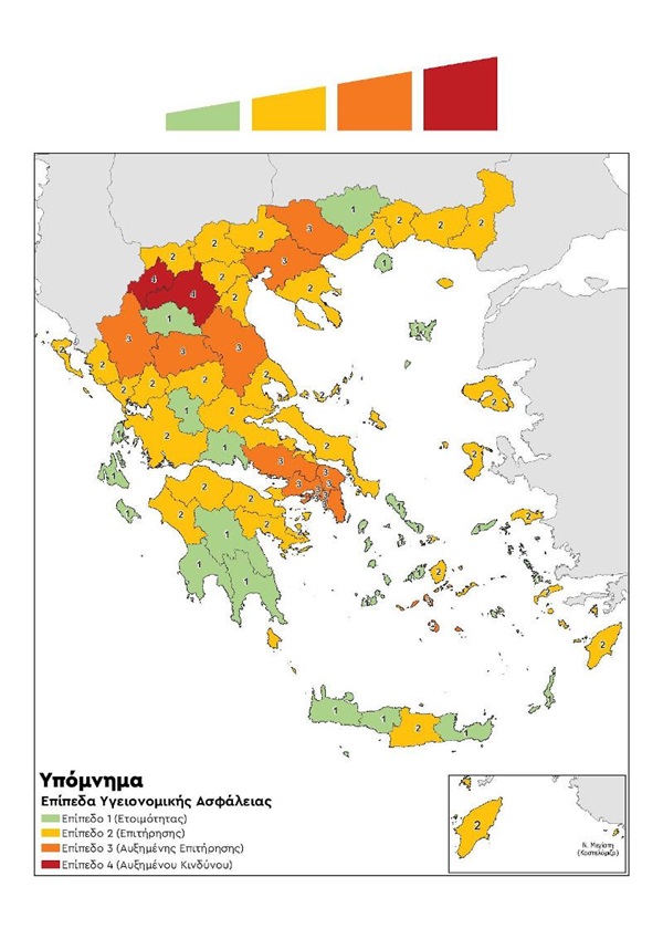 - 2 Περιφερειακές Ενότητες στο επίπεδο 4( Αυξημένου Κινδύνου) καμία περιοχή δεν ήταν σε αυτό το βαθμό συναγερμού πριν 14 μέρες.