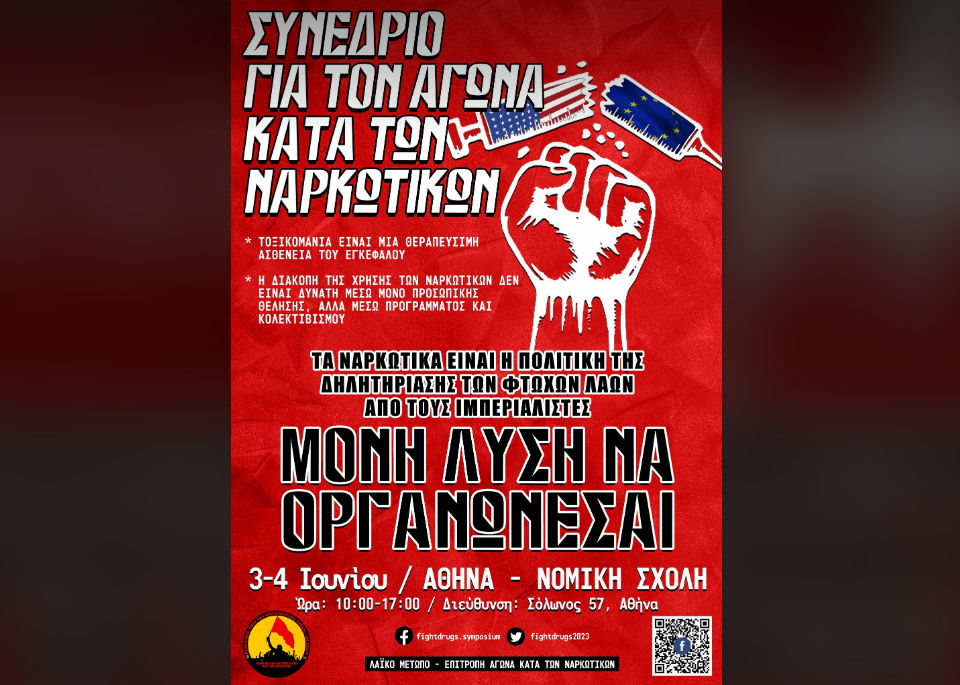 αγώνα των λαών» αναφέρει το κάλεσμα για το Διεθνές συνέδριο κατά των ναρκωτικών.