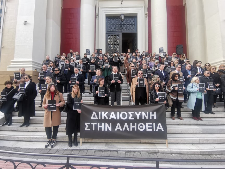 Στη σιωπηρή συγκέντρωση που έκαναν στην είσοδο του Δικαστικού Μεγάρου, σήκωσαν πανό με σύνθημα “Δικαιοσύνη στην αλήθεια”. Στα χέρια τους κρατούσαν εικόνες με τα ονόματα και τις ηλικίες των αδικοχαμένων νεκρών.