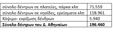 - Πόσα είναι τα δέντρα του Δήμου Αθηναίων που προβλέπει να τοποθετήσει το Συμφωνητικό; Αν προσθέσουμε τις τρεις μεγάλες κατηγορίες δέντρων που αναφέρονται στο Συμφωνητικό έχουμε την εξής εικόνα: