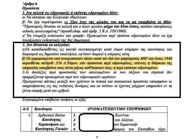 «β/ Οι εμφορούμενοι υπό ανατρεπτικών ιδεών κατά τον διά του ψηφίσματος ΜΘ’ του έτους 1948 κυρωθέντα υπ’ άριθ. 516 Α. Νόμον, εάν πρόκειται περί υδρονομέως, ούτινος η διάρκεια της υπηρεσίας υπερβαίνει τους πέντε μήνας καθ’ έκαστον έτος, η περί επόπτου υδρονομέων».