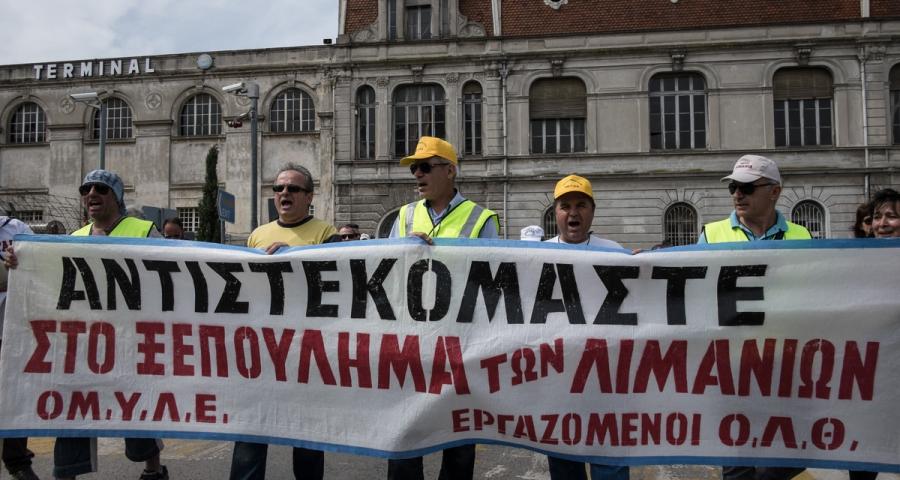 Την ώρα που γινόταν η εκδήλωση, εργαζόμενοι του λιμανιού, κινήματα κατά των ιδιωτικοποιήσεων και μέλη της Λαϊκής Ενότητας, κρατώντας πανό και φωνάζοντας συνθήματα, διαδήλωναν απέξω από το Εμπορικό και Βιομηχανικό Επιμελητήριο Θεσσαλονίκης.