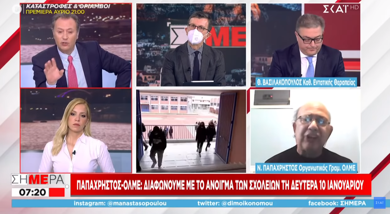 Ο Νίκος Παπαχρήστος που ήταν καλεσμένος σε εκπομπή του σταθμού, εκφράζοντας την αντίθεσή του στο υγειονομικό πρωτόκολλο που αποφάσισε η κυβέρνηση, έκανε ξεκάθαρη την αντίθεση του στο άνοιγμα των σχολείων έτσι στις 10 Ιανουαρίου. Όπως χαρακτηριστικά τους έλεγε, υπάρχει προβληματισμός στην ΟΛΜΕ καθώς τα σχολεία ανοίγουν με 50.000 κρούσματα ενώ είχαν κλείσει με 5.000 κρούσματα.