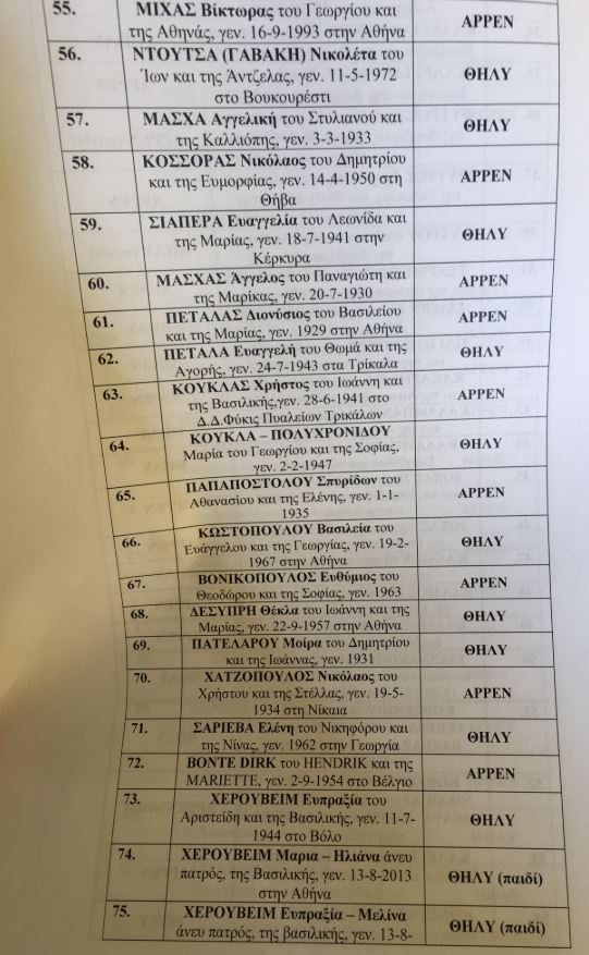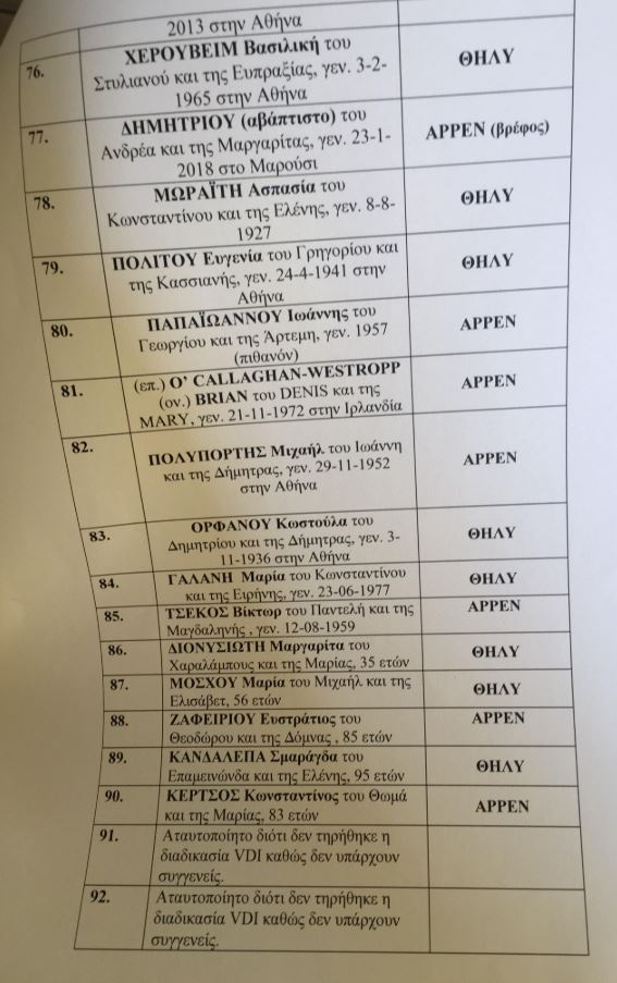 Στη λίστα περιλαμβάνονται και όσοι πέθαναν στα νοσοκομεία, αλλά και δύο που δεν έχουν ταυτοποιηθεί καθώς δεν έχουν αναζητηθεί από συγγενικά πρόσωπα.