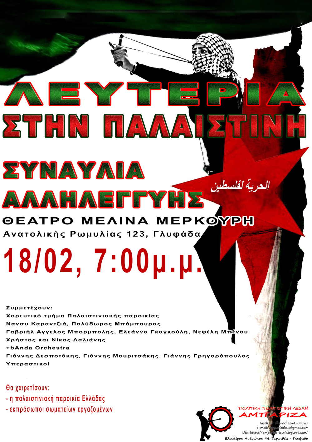 «Εδώ και εβδομήντα χρόνια ο παλαιστινιακός λαός βρίσκεται σε κατάσταση συνεχούς διωγμού. Με αποκορύφωμα τους τελευταίους πέντε μήνες το «κράτος – δολοφόνος» του Ισραήλ ξεδιπλώνει χρόνια τώρα απροκάλυπτα ένα ξεδιάντροπο σχέδιο γενοκτονίας και εξανδραποδισμού των Παλαιστινίων. Η βαρβαρότητα του απαρτχάιντ, των εποικισμών, των χιλιάδων φυλακίσεων και απαγωγών Παλαιστινίων, έρχεται να συμπληρωθεί με χιλιάδες δολοφονίες παιδιών, γυναικών και ανδρών.