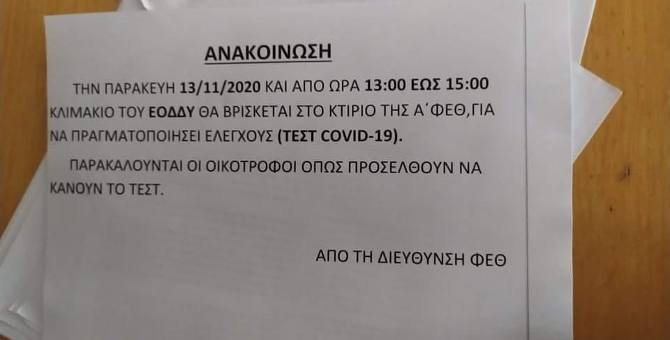 Μετά από εννέα συνεχόμενες ημέρες κατάληψης στα γραφεία του Ιδρύματος Νεολαίας και Δια Βίου Μάθησης (ΙΝΕΔΙΒΙΜ) και της διεύθυνσης των φοιτητικών εστιών, τη Τετάρτη, η Διεύθυνση Φοιτητικών Εστιών Θεσσαλονίκης, ανακοίνωσε ότι την Παρασκευή, κλιμάκιο του ΕΟΔΥ θα μεταβεί στις εστίες για να πραγματοποιηθούν τα τεστ στους οικοτρόφους.
