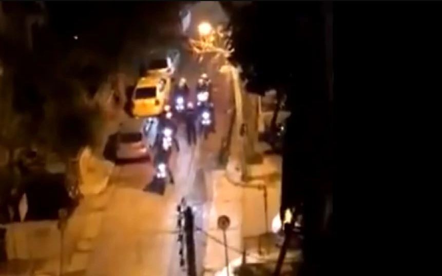 Στο βίντεο εμφανίζονται μηχανάκια με άνδρες της ομάδας ΔΡΑΣΗ μετά την ένταση που είχε δημιουργηθεί στην Πανόρμου να κάνουν περιπολίες στα στενά της περιοχής και ένας από τους άνδρες που επέβαινε σε ένα από τα μηχανάκια, χτύπησε με το γκλοπ του, το φανάρι παρκαρισμένου οχήματος.