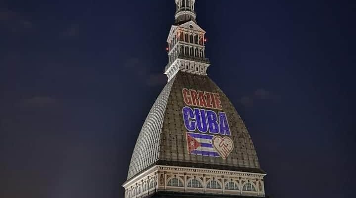 #UnaLuzPorCuba desde la #MoleAntonelliana de #Turín, capital de la Región #Piamonte. La fraternidad entre #Italia y #Cuba crece. Brigada #HenryReeve @PresidenciaCuba @EmbaCubaItalia @AicecCuba @JoseCarlosRguez @DiazCanelB @MINSAPCuba @CubaMINREX pic.twitter.com/V70l7QksWk