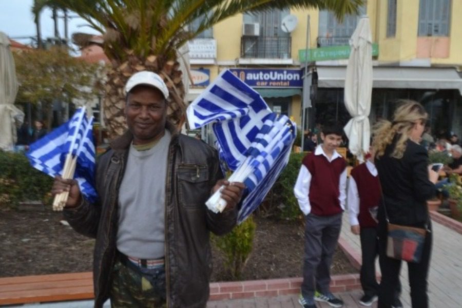 Εργατικός συνηθίζει ακόμα να πουλά στους μεγαλύτερους και να χαρίζει σε μικρά παιδιά σημαίες κατά τη διάρκεια των εθνικών επετείων.
