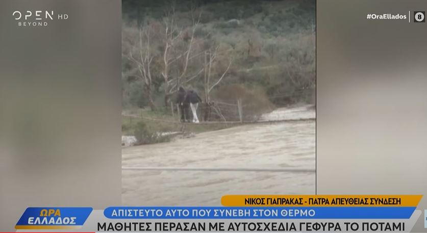 Εξοργιστικές εικόνες καταγράφει βίντεο από την Αιτωλοακαρνανία που δείχνουν για ακόμη μία φορά την έλλειψη κρατικών υποδομών, καθώς μαθητές αναγκάστηκαν να περάσουν φουσκωμένο από νερά ποταμό με αυτοσχέδια γέφυρα από σύρμα.
