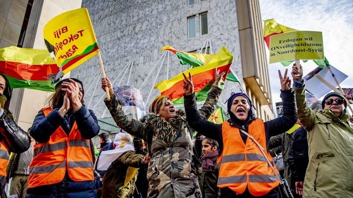 «Αφήστε την Τουρκία να σφαγιάσει τους Κούρδους, έτσι τους ευχαριστείτε επειδή νίκησαν το Νταές; (σ.σ. το Ισλαμικό Κράτος στα αραβικά)» και «Μετά τον Μπαγκντάντι, θα έρθει η σειρά του Ερντογάν», έγραφαν κάποια από τα πλακάτ που κρατούσε το πλήθος.