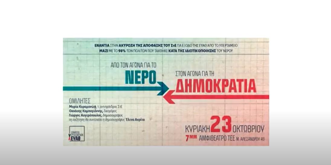 «Οι αποφάσεις του ΣτΕ είναι το θεσμικό επιστέγασμα του μακροχρόνιου αγώνα μας για να μην ιδιωτικοποιηθεί το Νερό και να παραμείνει Δημόσιο και Κοινωνικό Αγαθό ώστε να μη μετατραπεί σε αντικείμενο κερδοσκοπίας.