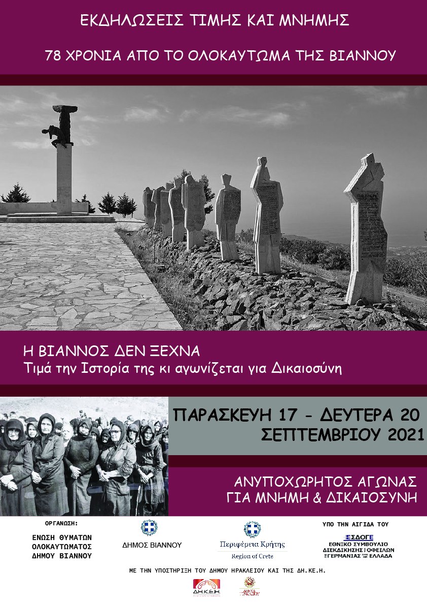 Στην πορεία μνήμης και τη συζήτηση συμμετέχουν, μαζί με τους πολίτες της Βιάννου, και εκπρόσωποι από το Δίστομο, το Κομμένο και την Ομάδα AK “Distomo” (Αμβούργο).
