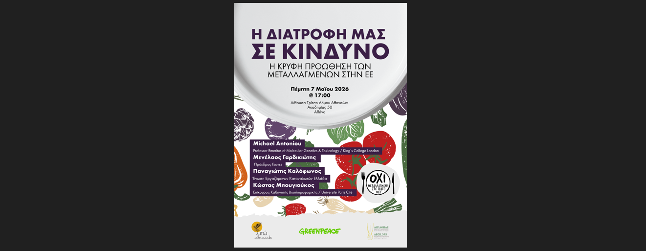 Εν όψει της τελικής ψηφοφορίας για την αλλαγή νομοθεσίας για τα νέα Γενετικά Τροποποιημένα Φυτά στο Ευρωπαϊκό Κοινοβούλιο στις 19 Μαΐου, στην εκδήλωση θα παρουσιαστούν οι επιστημονικές εκτιμήσεις για τις επιπτώσεις στην υγεία και το περιβάλλον, καθώς και οι οικονομικές και κοινωνικές διαστάσεις του θέματος.