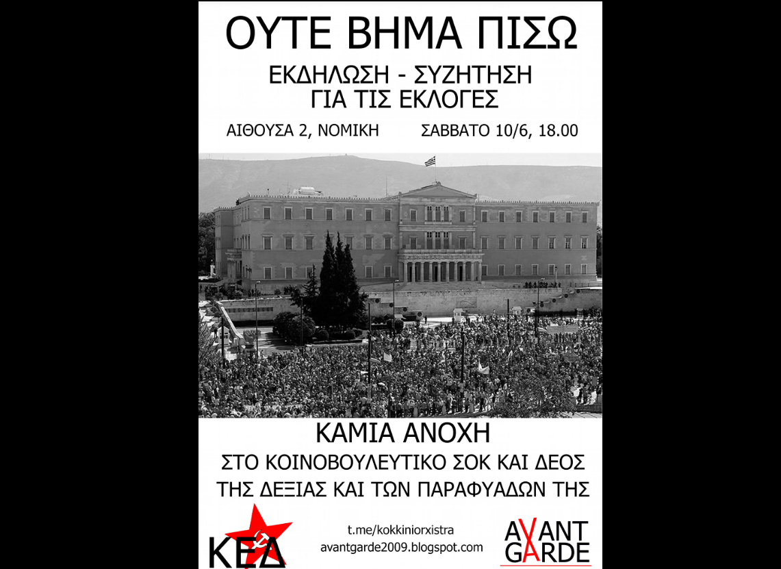 Η εκδήλωση θα πραγματοποιηθεί το Σάββατο 10 Ιουνίου, στις 6μμ, στη Νομική Σχολή Αθηνών (είσοδος από Μασσαλίας).