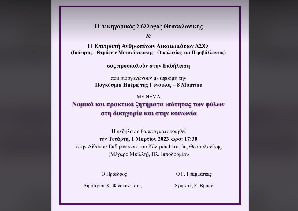 της Άσπας Θεοχάρη, δικηγόρος, μέλος ΔΣΘ, υποψ ΔΝ (ΑΠΘ)