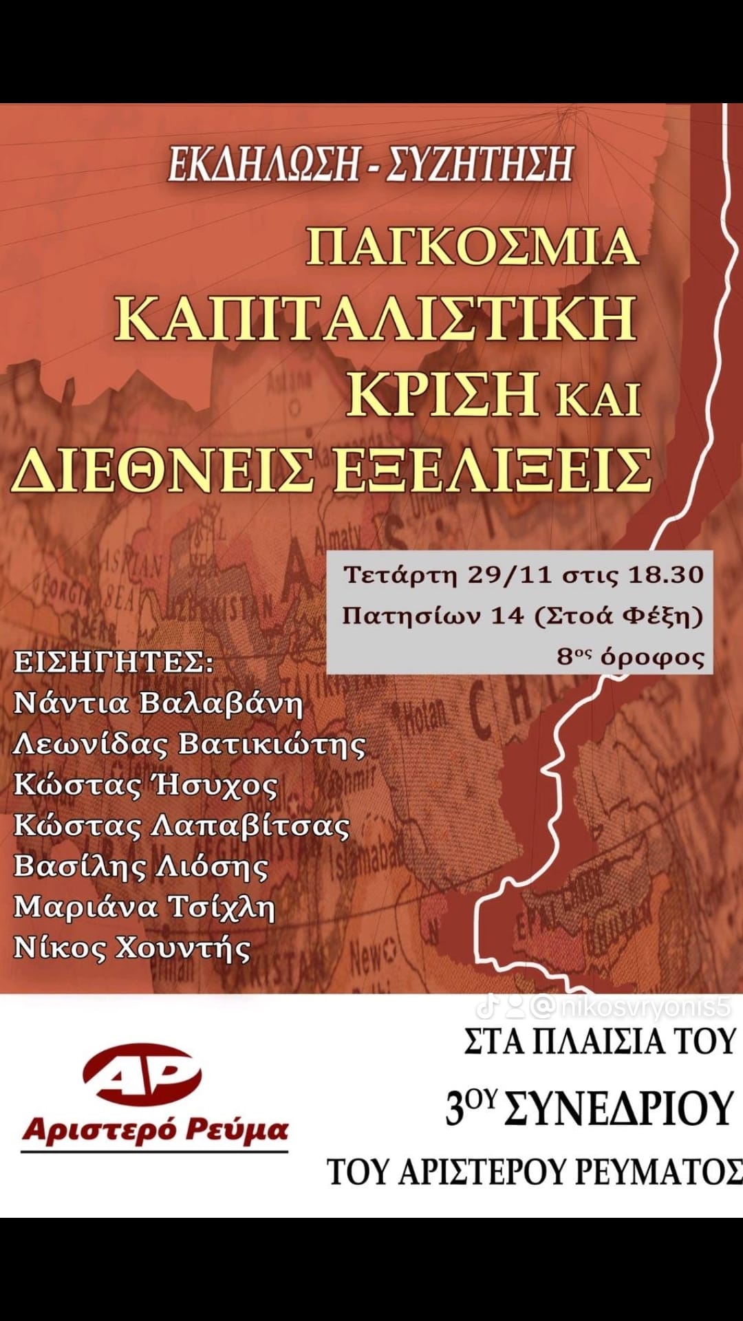 Εκδήλωση - συζήτηση στα πλαίσια του 3ου Συνεδρίου του Αριστερού Ρεύματος.