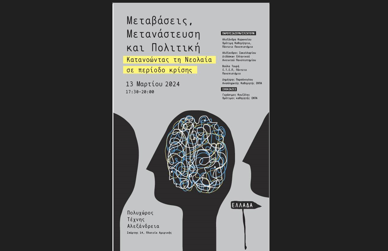 Χαιρετισμό θα απευθύνει η Ξένια Χρυσοχόου, Καθηγήτρια Κοινωνικής και Πολιτικής Ψυχολογίας του Παντείου Πανεπιστημίου και Πρόεδρος του ΕΣ του ΕΛ.ΙΔ.Ε.Κ.