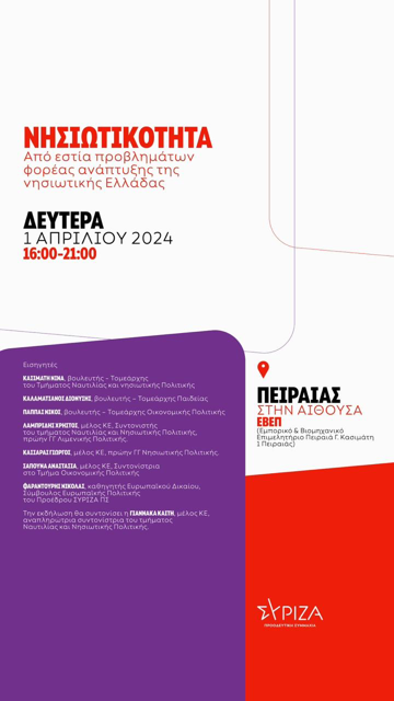 Την εκδήλωση θα συντονίσει η Καίτη Γιαννακά, μέλος της ΚΕ & αναπληρώτρια συντονίστρια του τμήματος Ναυτιλίας και Νησιωτικής Πολιτικής.