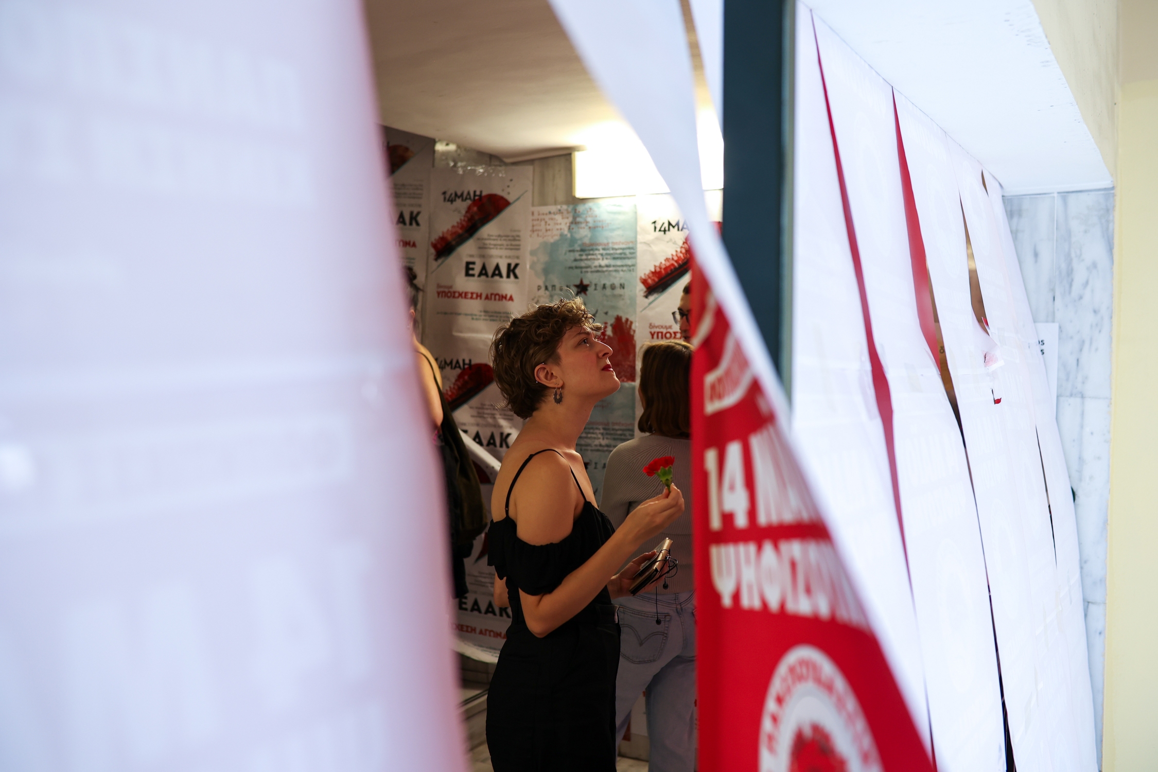 «Στη Χίο, η ΔΑΠ-ΝΔΦΚ, η παράταξη της ΝΔ, κρέμασε σήμερα το πρωί αυτό το εμετικό πανό στο Πανεπιστήμιο! Με την αισχρή θεωρία των δύο άκρων, που ξεπλένει τον φασισμό και ταυτίζει τους κομμουνιστές με τους ναζί, το ΚΚΕ με την εγκληματική Χρυσή Αυγή, τα θύματα με τους θύτες, κάνει φοιτητικές εκλογές η ΔΑΠ-ΝΔΦΚ».